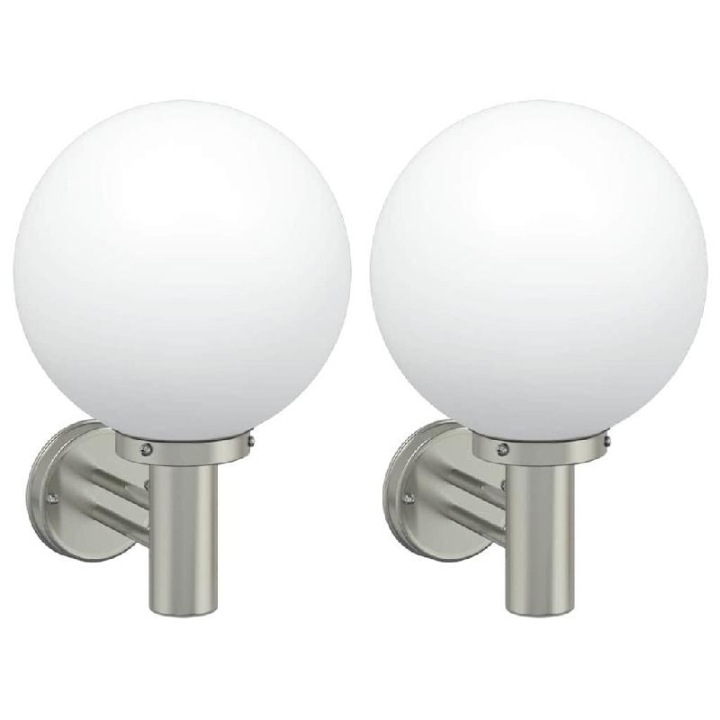Helloshop26 - Lot de 2 appliques murales extérieures modernes rondes 28 x 25 x 38 cm résistantes intempéries en acier inoxydable 02_0056492 - inox