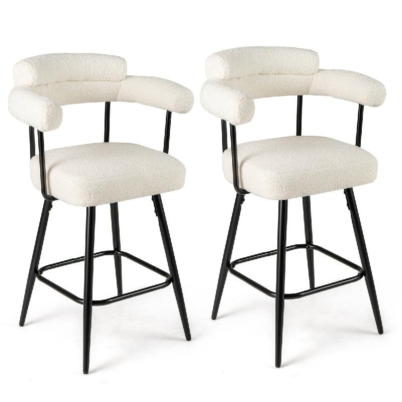 Helloshop26 - Lot de 2 tabourets de bar pivotants 63 x 54 x 100 cm confort élevé avec dossier incurvé et accoudoirs en velours teddy 20_0012545 - 3