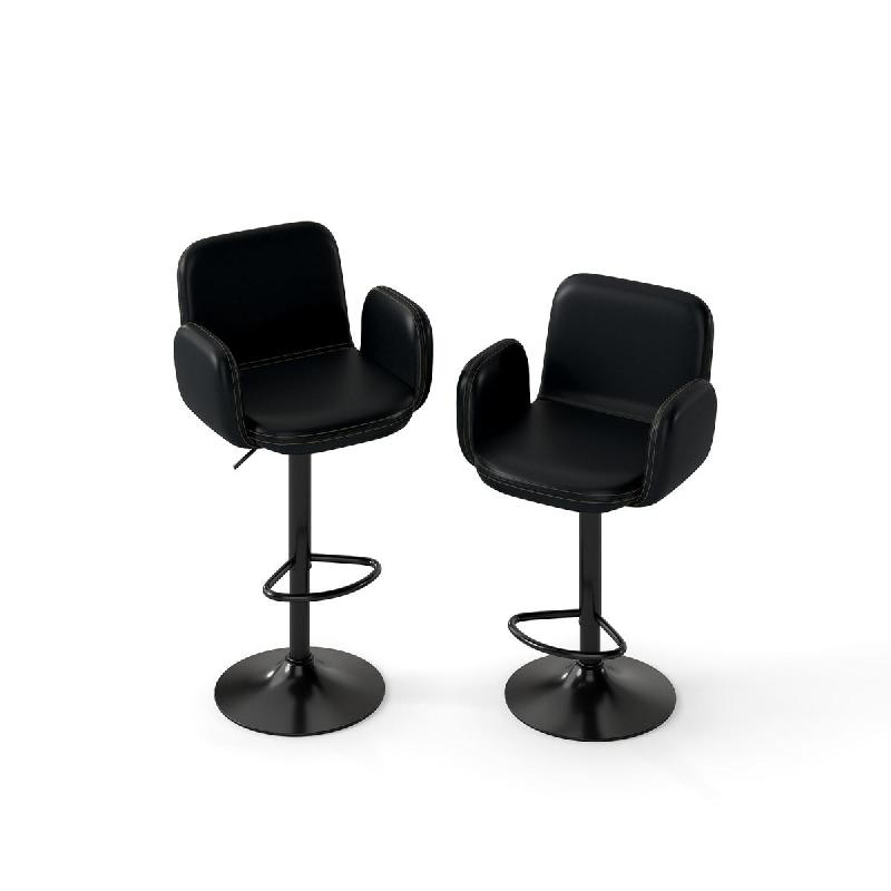 Helloshop26 - Lot de 2 tabourets de bar pivotants réglables 52 x 55 x 89-110 cm confort ergonomique moderne en cuir artificiel noir 20_0018121 - 3000