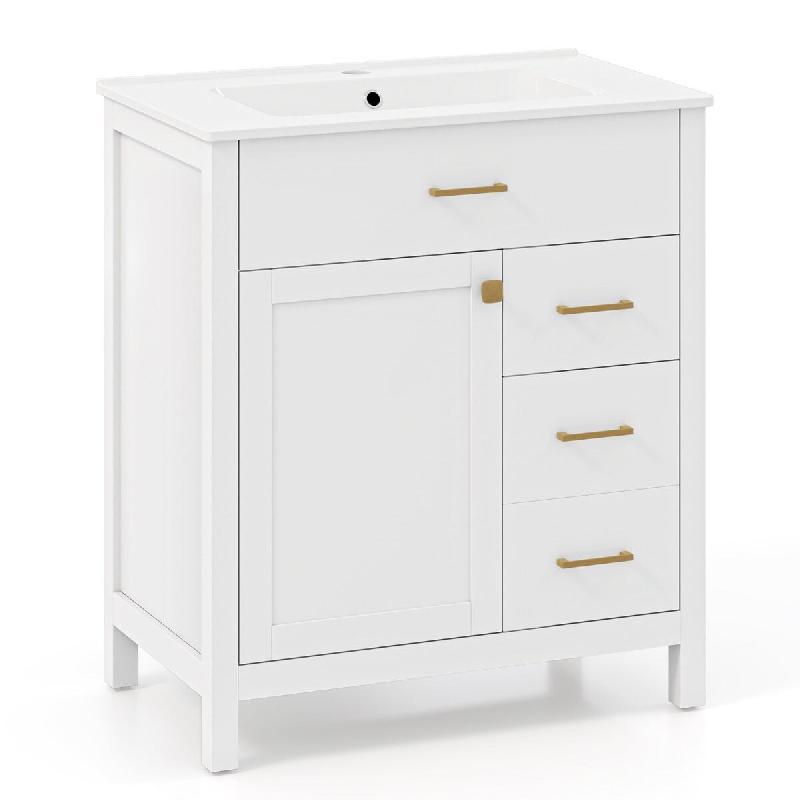 Cette armoire de lavabo classique avec un lavabo intégré, à l'aspect frappant et ordonné, s'adapte parfaitement à votre salle de bains ou à votre toilette. - Matériau durable : le bois d'ingénierie est d'une qualité exceptionnelle avec une surface lisse et présente également résistance,