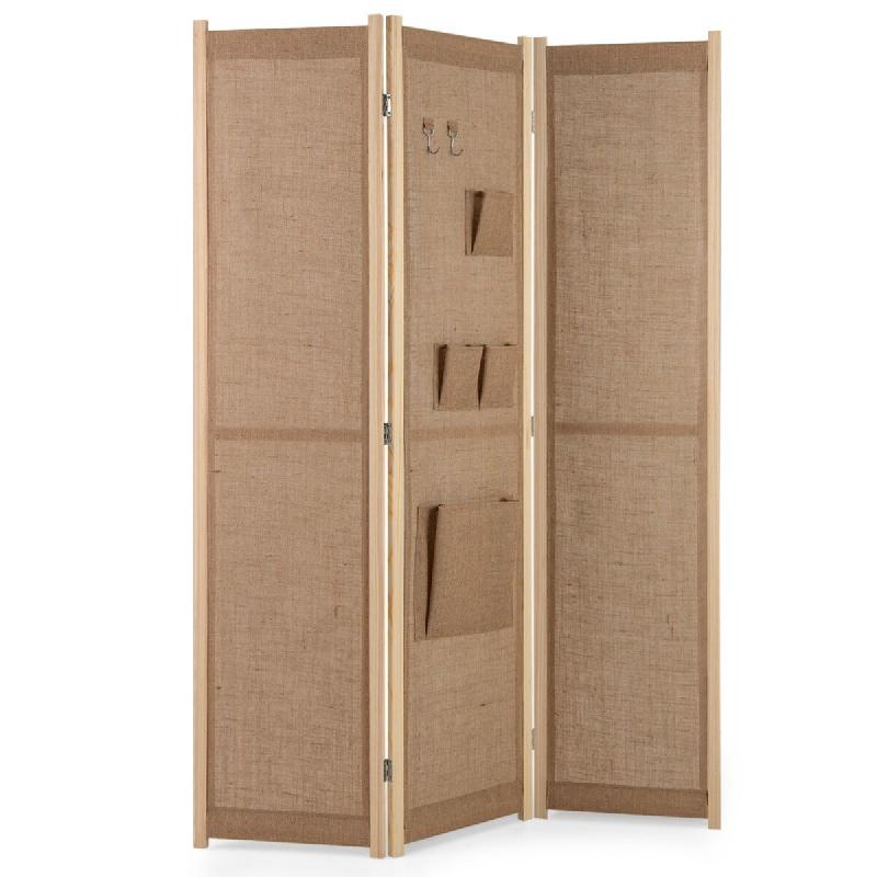 Helloshop26 - Paravent à 4 panneaux pliable 170 x 121 x 2 cm avec rangements et charnières pivotantes style moderne en lin 20_0017004 - 3000231630462
