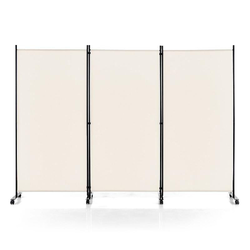 Helloshop26 - Paravent à roulette 3 panneaux pliable séparation 262 x 180 cm solution pratique moderne en polyester blanc 20_0013049 - 3000227558008