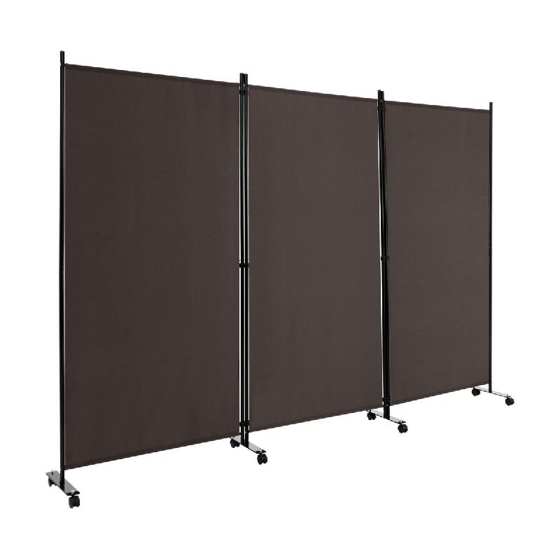 Helloshop26 - Paravent à roulettes 3 panneaux pliable 262 x 180 cm séparation privée déplaçable design marron 20_0013051 - marron 3000227558466