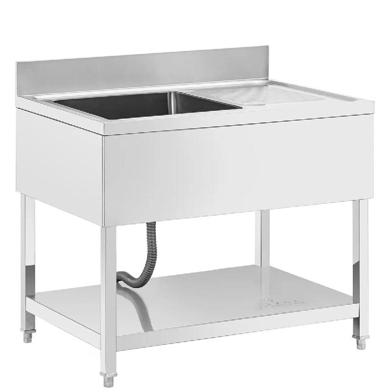 Plonge en inox - 120 cm L'armoire sous évier a été spécialement conçue pour les domaines de la restauration, de l'hôtellerie voire des laboratoires. Cet élément se distingue par sa structure robuste et résistante, offrant une capacité de charge élevée. Caractéristiques principales : -