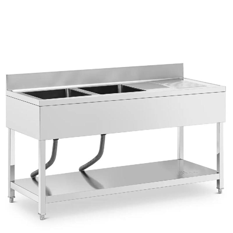Helloshop26 - Plonge inox professionnel 2 éviers 160 x 60 x 97 cm acier inoxydable argenté 14_0009565 - 3000221702421
