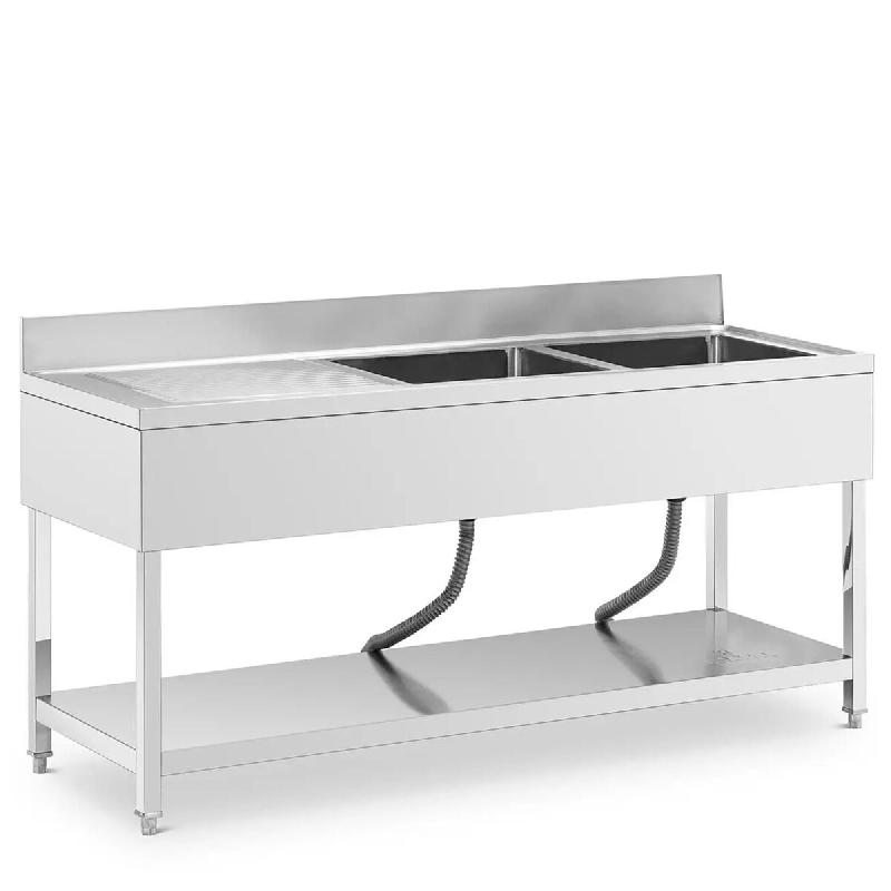 Helloshop26 - Plonge inox professionnel 2 éviers 180 x 60 x 97 cm acier inoxydable argenté 14_0009567 - 3000221705514