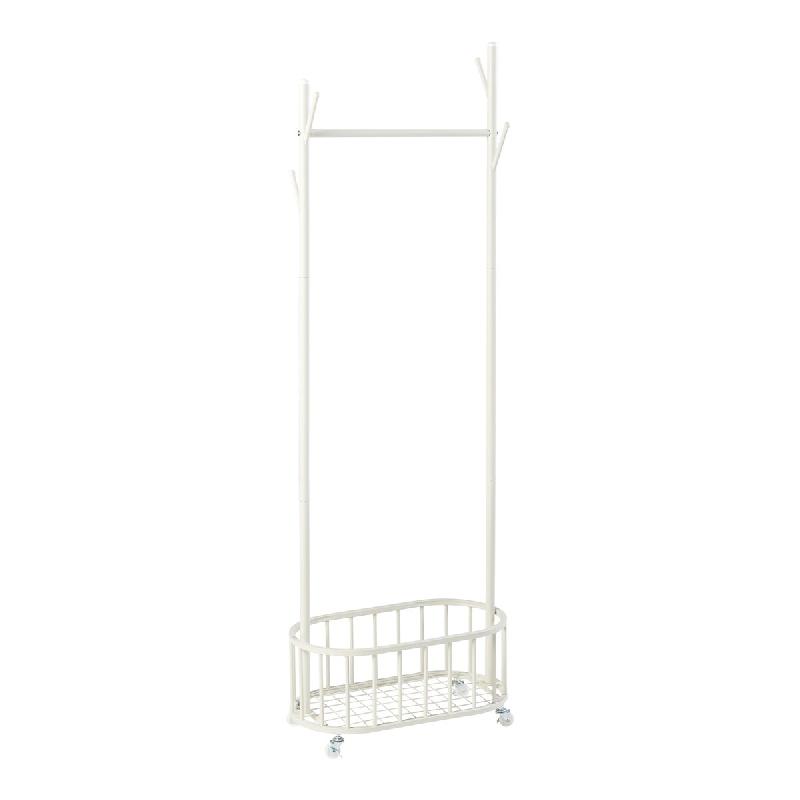 Portant à roulettesCe portemanteau mobile offre une installation rapide et facile. Équipé d'une barre de penderie, d'un panier à linge intégré et de quatre crochets, il offre une solution de rangement optimale. La tringle à vêtements peut accueillir vestes, manteaux et écharpes, tandis que le panier à linge inférieur est idéal pour le linge sale, les couvertures et autres accessoires. Deux crochets de chaque côté permettent de suspendre des parapluies, sacs à main ou chapeaux. Les quatre roulettes offrent une mobilité facile sans compromettre la stabilité, permettant de déplacer le portemanteau d'une pièce à l'autre. Un choix polyvalent pour organiser votre chambre, entrée ou dressing.Description :- porte-vêtement avec une barre de penderie