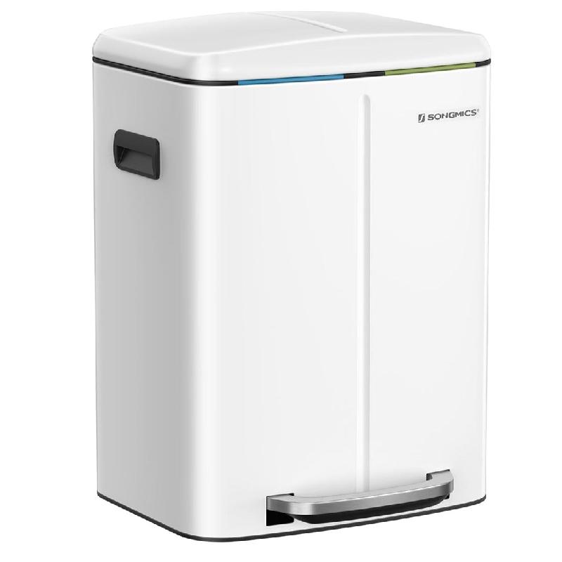 Cette poubelle de cuisine combine élégance et praticité pour faciliter le tri sélectif au quotidien. Avec sa couleur blanche raffinée et son design simple, elle s'intègre harmonieusement dans une cuisine moderne tout en apportant une touche soignée.Elle dispose de 2 compartiments pratiques permettant de trier facilement vos déchets, le tout sans contact direct grâce à un système de pédale. Il suffit d'appuyer légèrement pour ouvrir le couvercle et jeter vos ordures en toute simplicité.Malgré sa structure solide en métal, elle se distingue par sa délicatesse : son mécanisme de fermeture amortie permet au couvercle de se refermer doucement, sans bruit et sans claquement.Les 2 seaux intérieurs sont amovibles et dotés de trous à l'arrière pour maintenir les sacs poubelles en place et faciliter leur remplacement. En cas de fuite ou d'accident, il suffit de retirer les seaux pour les nettoyer rapidement.Cette poubelle allie ainsi confort d'utilisation, hygiène et durabilité, rendant vos gestes quotidiens plus agréables et votre cuisine toujours impeccable.Couleur : Blanc