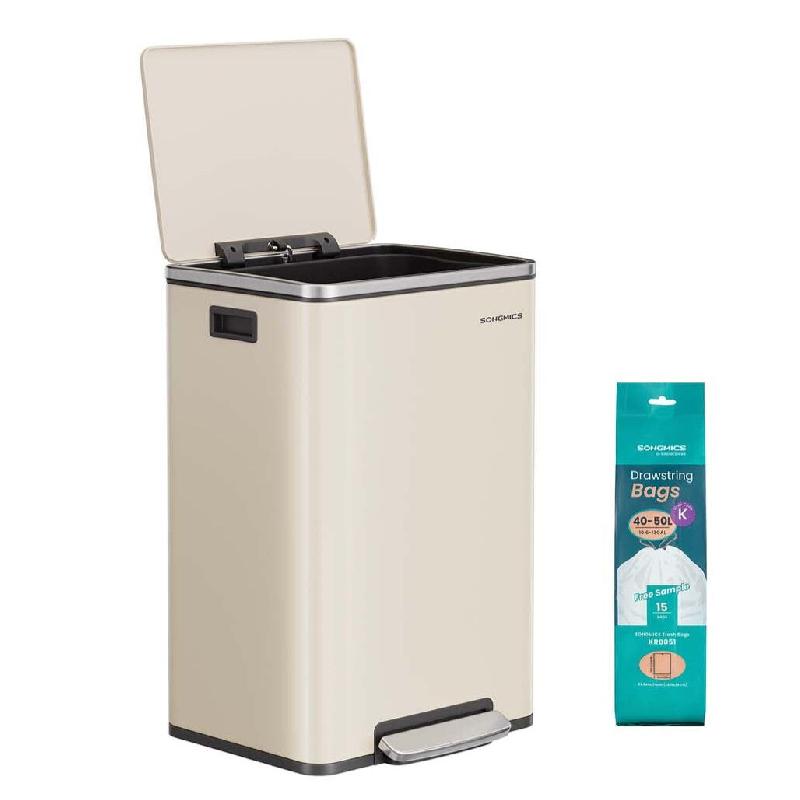 Avec son design simple et élégant, cette poubelle s'intègre facilement dans votre intérieur tout en ajoutant une touche discrète et moderne. Elle allie esthétisme et fonctionnalité pour un usage quotidien agréable.Pratique, elle est équipée d'une pédale qui permet d'ouvrir le couvercle sans les mains, pour une hygiène optimale. Le couvercle se referme lentement et silencieusement, évitant tout bruit gênant.Sa conception en acier de haute qualité lui assure robustesse et durabilité. Sa surface résistante à la rouille et aux traces de doigts reste propre plus longtemps et se nettoie facilement.Le seau intérieur en plastique PP est amovible et doté de poignées latérales pour être soulevé, vidé ou nettoyé en toute simplicité.Compatible avec les sacs poubelle 50 L (code sac K), elle est fournie avec 15 sacs adaptés, pour une utilisation immédiate dès la livraison.Couleur : Crème