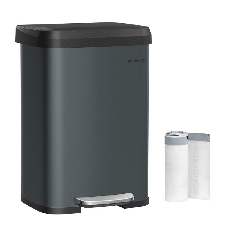 Cette poubelle de cuisine de 50 L est idéale pour les grandes familles grâce à son volume généreux qui évite de devoir la vider trop souvent. Elle allie praticité et design moderne pour s'intégrer parfaitement dans votre intérieur.Équipée d'une large pédale de 19,7 cm en acier robuste, elle permet une ouverture facile et confortable du couvercle, tout en garantissant une durabilité à long terme. Son acier résistant à la rouille se nettoie aisément avec un simple chiffon humide, ce qui en fait un accessoire à la fois hygiénique et esthétique.Le couvercle se ferme en douceur et sans bruit, offrant un confort d'utilisation supplémentaire. Il peut aussi rester ouvert si vous l'actionnez manuellement jusqu'au point de blocage, idéal lors des sessions de préparation en cuisine.Un filtre à charbon intégré dans le couvercle neutralise les mauvaises odeurs pour garder votre cuisine toujours fraîche. De plus, 15 sacs poubelle adaptés (45-55 L) sont inclus pour une utilisation immédiate.Caractéristiques :