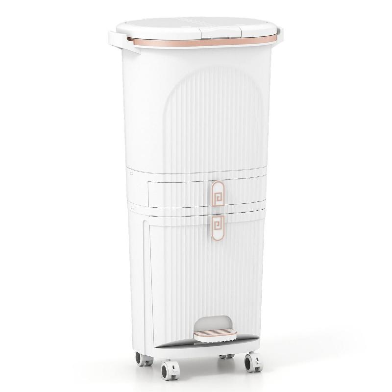 Simplifiez votre quotidien avec cette poubelle à 2 étages, idéale pour un tri efficace des déchets. - Son design ergonomique et compact s'intègre parfaitement dans toutes les pièces de votre maison. - Optimisée pour le tri, cette poubelle dispose de deux seaux de 12L et d'un compartiment ba