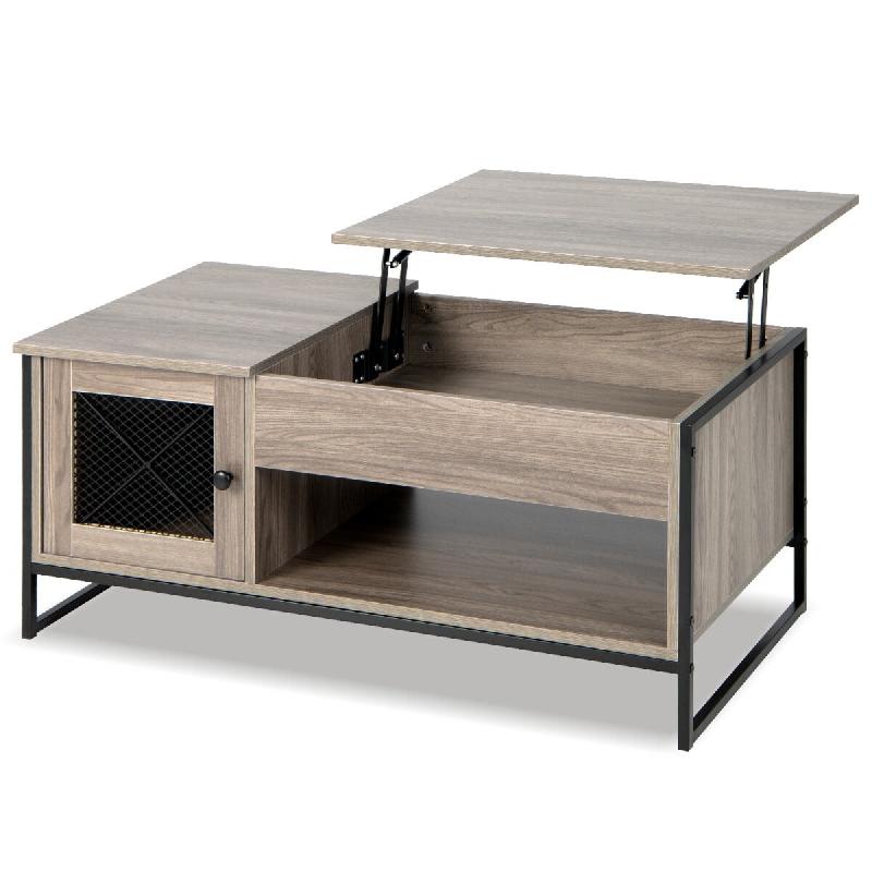 Helloshop26 - Table basse à plateau relevable 104 x 52,5 x 58 cm avec rangement pratique et design industriel en bois gris 20_0013751 - 3000227907554