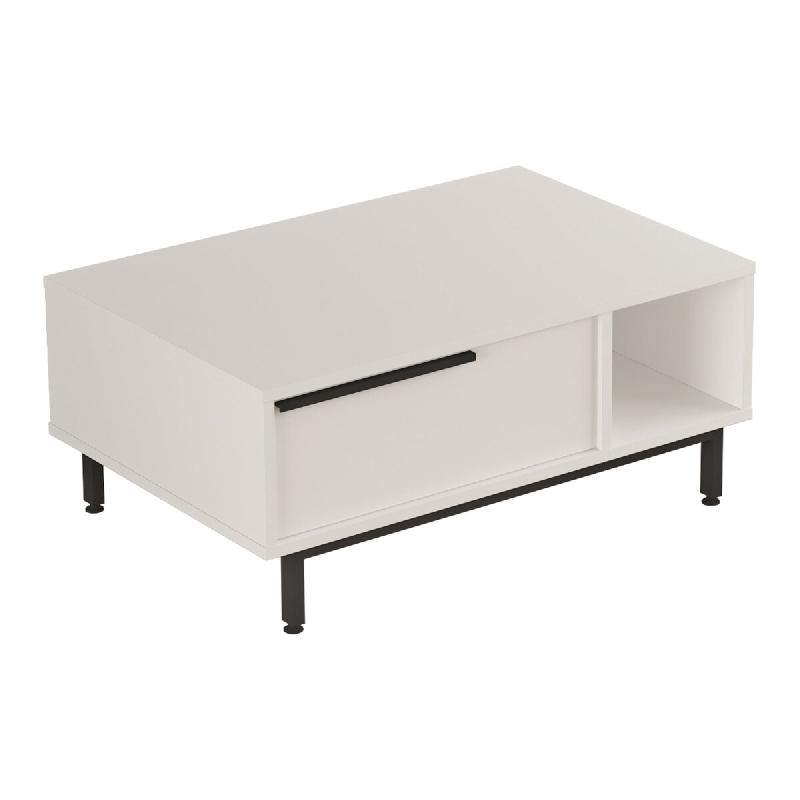Cette table basse ajoute une ambiance exceptionnelle à votre salon grâce à son design élégant et intemporel. Le montage est rapide et simple, et ses 4 pieds en métal assurent la stabilité et contribue au style épuré de la table.Le compartiment rabattable, équipé d'une poignée, s'ouvre facilement pour ranger vos objets en toute discrétion. Le compartiment de rangement ouvert sur le côté et l'espace à l'arrière offrent des options de rangement supplémentaires.Adaptée à divers styles de décoration, cette table est idéale pour poser des magazines, des télécommandes, des snacks, des boissons ou des objets décoratifs, enrichissant ainsi votre espace de vie.Points forts :- table basse stylée et intemporelle pour votre appartement