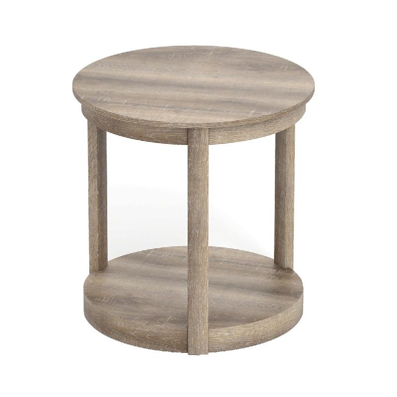 Helloshop26 - Table basse ronde à 2 niveaux 60,5 x 61 cm espace de rangement effet rustique en bois d'hévéa gris 20_0013807 - 3000227943163