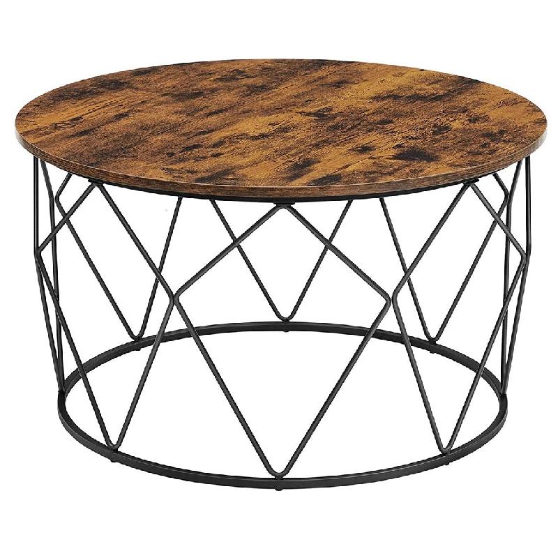 Helloshop26 - Table basse ronde meuble de salon cadre en acier pour salon chambre bureau style industriel marron 12_0007454 - 3000224085989