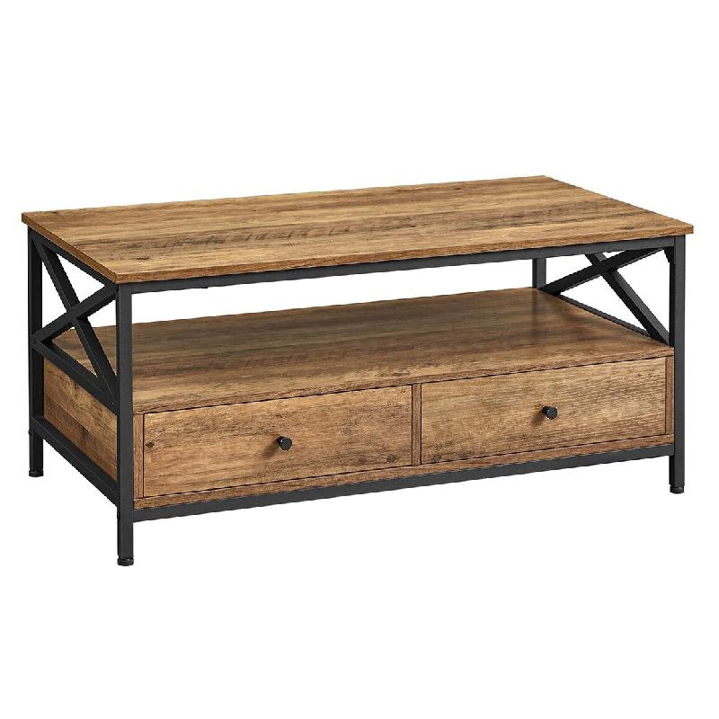 Helloshop26 - Table basse table de salon buffet bas avec 2 tiroirs et un compartiment ouvert cadre en acier en forme de x 100 x 55 x 12_0007486 - 3000