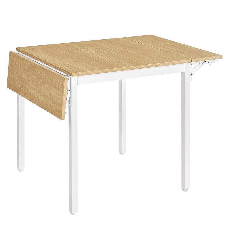 Cette table extensible est idéale pour s'adapter à toutes les occasions. Dépliée, elle offre un large plateau de 78 x 120 cm, parfait pour accueillir repas de famille, invités ou moments conviviaux autour de jeux de société. Pliée, elle devient une table compacte de 78 x 84,5 cm qui trouve facilement sa place dans une petite cuisine, un balcon ou un coin repas intimiste.Son design ingénieux avec 2 abattants permet de passer rapidement d'une configuration à l'autre selon vos besoins. Pratique au quotidien, elle combine gain de place et convivialité.Sa structure robuste associe panneaux d'aggloméré et pieds en acier solides, renforcés par des supports stables. Les pieds réglables assurent un maintien parfait, même sur un sol légèrement irrégulier.Le montage est simple et rapide grâce aux instructions illustrées et aux pièces numérotées. Vous pourrez l'assembler sans effort et en profiter aussitôt.Couleurs : Chêne naturel, blanc nuage