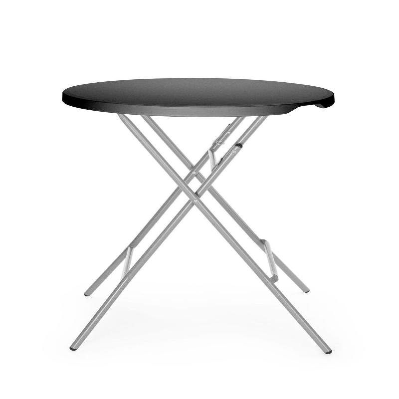Mange debout pliant - Table haute 110 cm, 80 cm de diamètre - Ce mange debout pliable blanc de 80 cm de diamètre a un plateau en polyéthylène haute densité. Cette matière très résistante permet d'utiliser votre table haute en intérieur comme en extérieur. Grâce à sa structure en acier