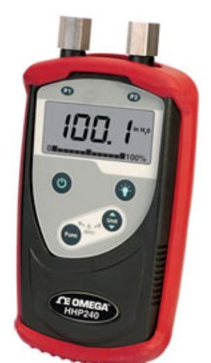 Description - Les manomètres portatifs HHP240 d'Omega offrent une mesure de pression de précision pour un usage sur le terrain, en usine et en laboratoire. Deux modèles sont disponibles : - Peu coûteux, le HHP241 est doté d'une précision de 0,25 % de pleine échelle, notamment pour les effet