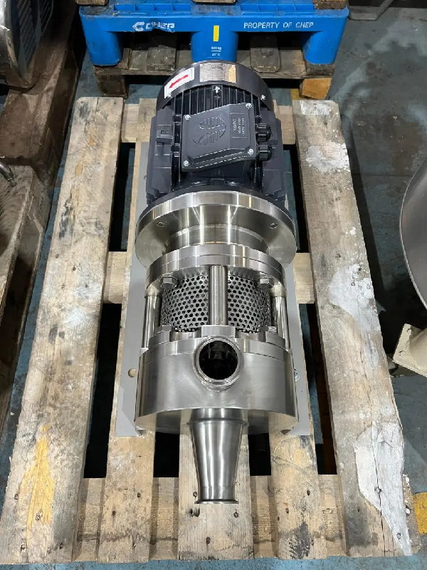 Référence - : - C7406 - Skid portable pour homogénéisation en ligne LINEMIX avec trémie d'alimentation en acier inoxydable 316 et entraîné par convertisseur de fréquence. - Matériel - Acier inoxydable 316/316L - Caractéristiques techniques - Année de fabrication: 2021 - MOTEUR: 5,