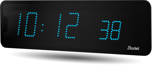 Horloge LED bleues pour intérieur - Affichage : - Heure - minute - seconde - Chiffres : 5 cm - Lisibilité : 20 mètres - Fonctionnalités : - Alternance heure, date, N° de semaine - Boîtier noir mural, simple face - Réceptrice impulsion minutes 24V - Alimentation 230V