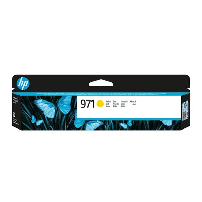 P>HP 971 cartouche d'encre jaune authentique. Type d'encre de couleur: Encre à pigments, Type de cartouche d'encre: Rendement standard, Rendement par page d'encre de couleur: 2500 pages, Volume d'encre de couleur: 32 ml, Couleurs d'impression: Jaune, Quantité: 1 pièce(s)P