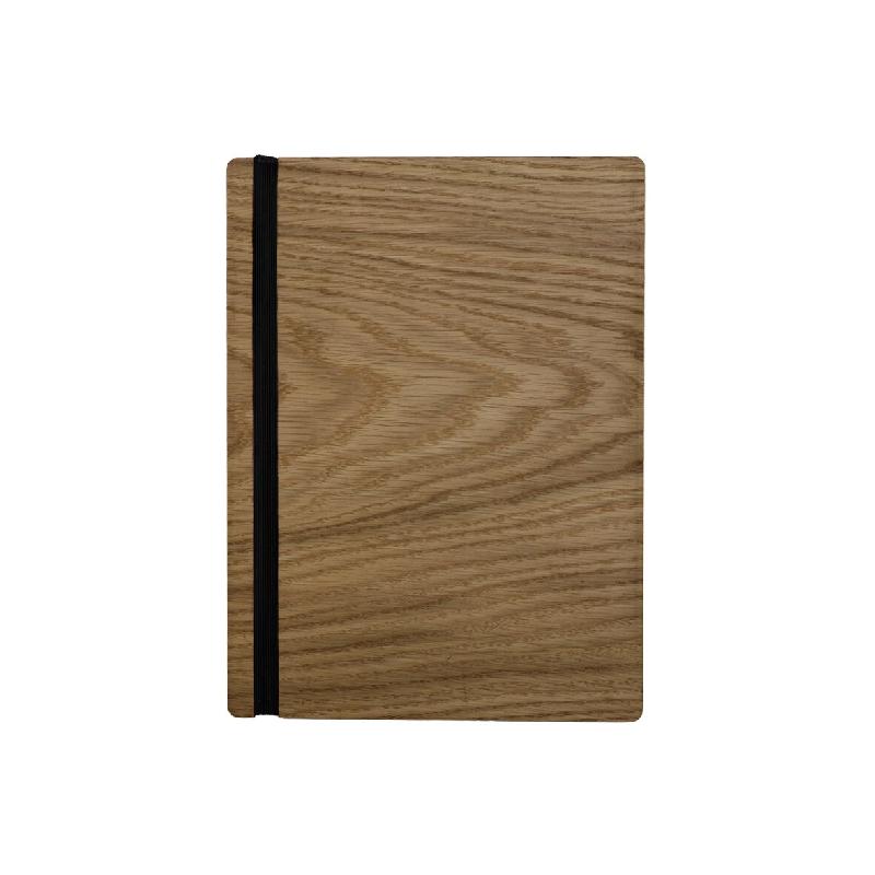 Hungry Club Porte Menu en bois à élastique A5 « Le Demi Tendu » - Chêne - Élastique Noir - Bois massif PM-DT-A5-CH-EN