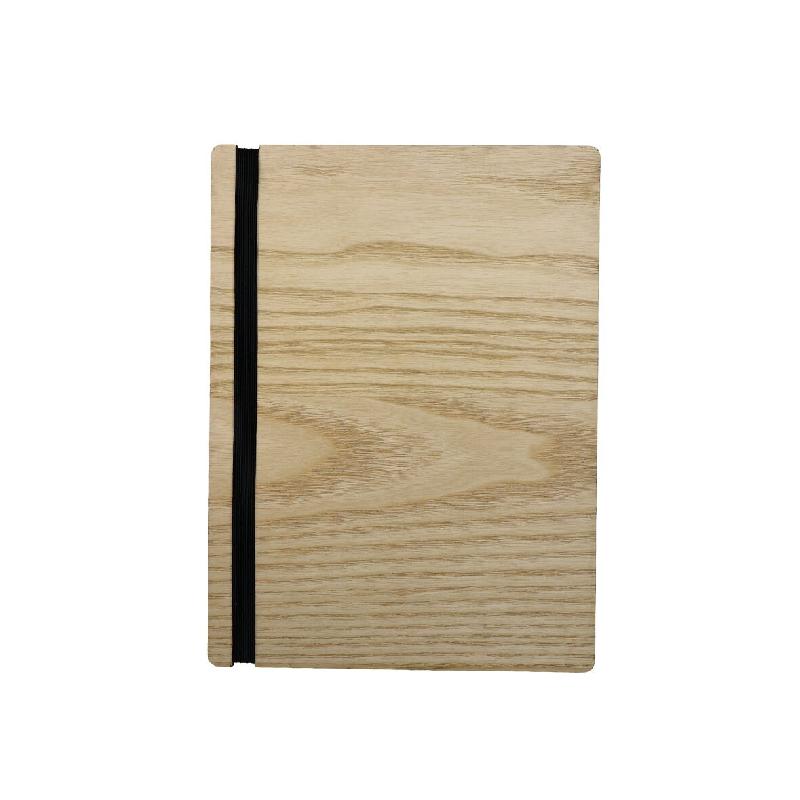 Hungry Club Porte Menu en bois à élastique A5 « Le Demi Tendu » - Frêne - Élastique Noir - Bois massif PM-DT-A5-FR-EN