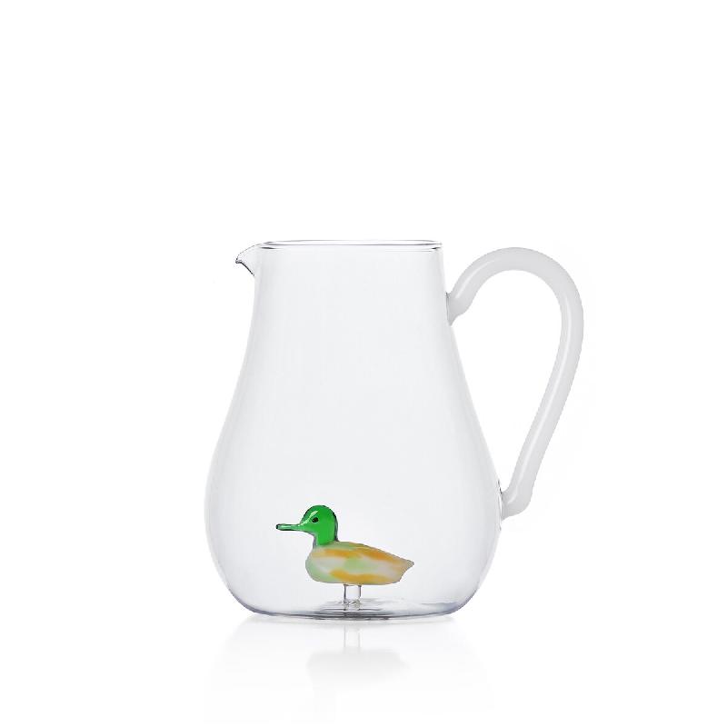 Ichendorf - Pichet de canard - La Ferme des animauxLa cruche de canard de la collection La Ferme des animaux est un parfait exemple de savoir-faire alliant ironie et design raffiné. Conçu par Alessandra Baldereschi, il est fabriqué en borosilicate moulé à la lampe, résistant et léger, idéal pour accompagner la table avec un style unique.