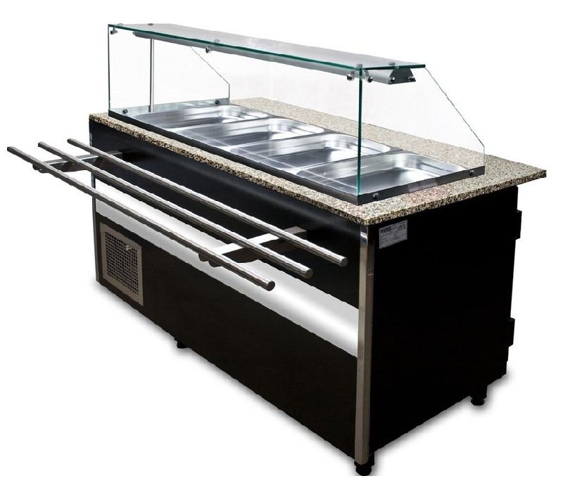 - Système modulaire, combinable avec un bain-marie et un élément de caisse neutre pour les systèmes de distribution de repas dans les restaurants et la petite restauration.