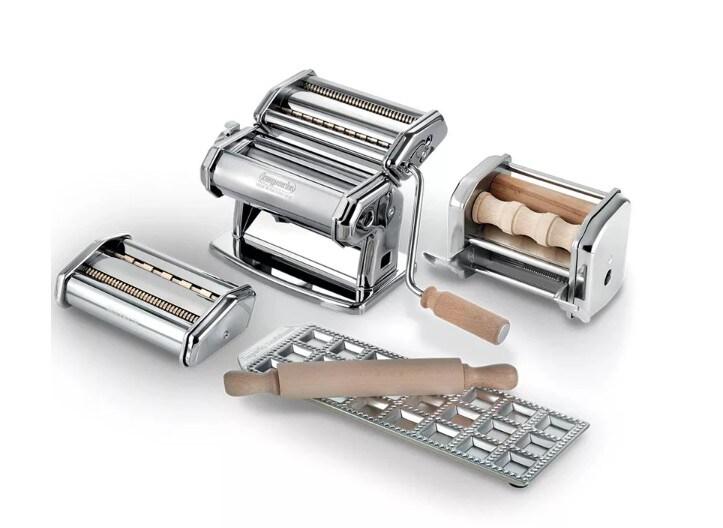 Imperia - Usine de pâtes. Fabriqué en Italie. Kit avec machine à pâtes fraîches, moule à raviolis, coupe-pâtes réglable et MilleGnocchi - acie