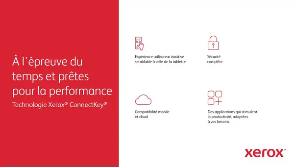 Découvrez l'imprimante couleur Xerox® VersaLink® C7000, une solution idéale pour se démarquer avec des impressions de qualité professionnelle. Grce à  sa technologie Xerox® ConnectKey®, elle s'adapte parfaitement à  vos besoins modernes en matière d'impression et de numérisation.