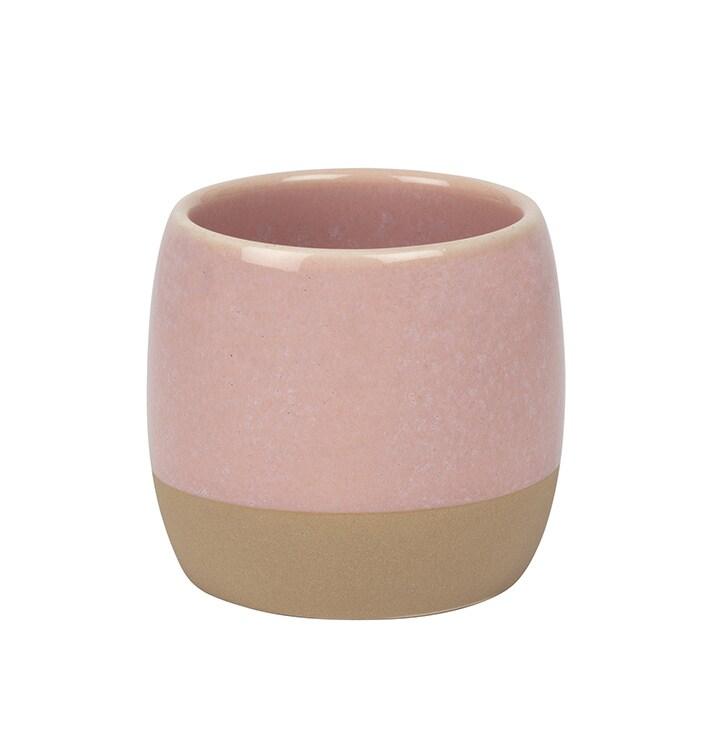 Tasse en Grès décorée avec un émail réactif ; Coloris Rose poudré très élégant et très agréable au touché. Peut également être utilisé comme petit contenant ou mise en bouche. Le décor peut varier d'un gobelet à l'autre.