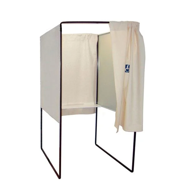 Cet isoloir est en acier, spécialement conçu pour faciliter l'accès aux personnes à mobilité réduite, il ne dispose d'aucune barre de seuil pour un accès aisé.Ses caractéristiques : - Sa structure est faite avec des tubes carrés de 20 x 20 mm. - L'isoloir possède 4 rideaux opaques de 1,