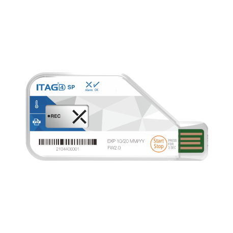 Nouvelle génération d'enregistreurs de température usage unique, avec prise USB intégrée et rapport PDF automatique. - Caractéristiques principales : - Les ITAG4 sont équipés d'un écran LCD indiquant au premier coup d'œil l'état du produit contrôlé. - Ils sont livrables préprogramm