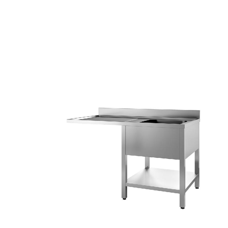 7106.0020 - Table d'approv. lave vaisselle avec étagère trou déchets à droite 7280.0045 - 0046Dimensions (LxPxH) (mm) : 1200x750x900Dimensions de lavabo (LxPxH) (mm) : 500x400x250Position a cote de machine : Charnière à droitePosition plonge : Charnière à gauche