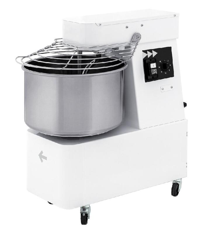 Pétrin professionnel à spirale conçu pour le pétrissage efficace des pâtes. - Cuve fixe d'une capacité de 48 litres, avec 2 vitesses pour s'adapter aux différentes préparations. - Capacité de production : 128 kg/h. - Fonctionne en 400 V / 2200 W. - Dimensions : 480 × 805 × (H) 850 mm.