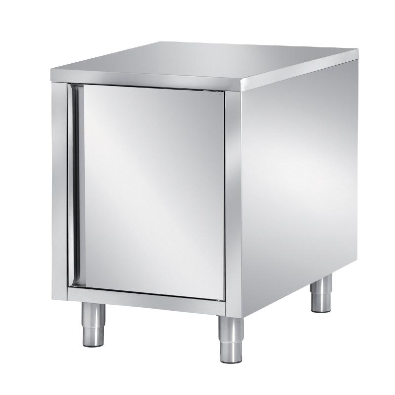 Meuble inox - 0.8 m - 2 portes battantes - Référence : GASR87M - Caractéristiques principales : - Construction soudée - Angles arrondis - Hauteur de travail idéale - Capacité de charge très élevée - Tablette de base et tablette intermédiaire - Ouverture et fermeture des portes to
