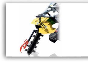 - Trancheuse à chaîne - S'adapte sur les pelleteuses - Profondeur jusqu'à 140 cm - Options disponibles : - Dérouleur - Pose drain - Contrôle hydraulique de profondeur avec guidage laser en option -
