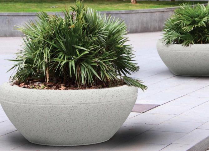Jardinière en béton préfabriqué.