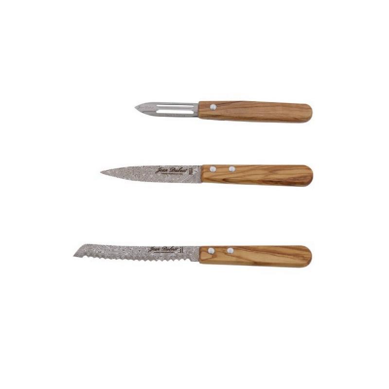 Coffret 3 couteaux CB10A250C16343 de Jean Dubost. - Le Trio de Cuisine indispensable pour vos préparations culinaires dignes de la tradition gastronomique française ! Il est composé des pièces essentielles : 1 couteau à tomate, 1 couteau d'office et 1 éplucheur en véritable bois d'olivier gr