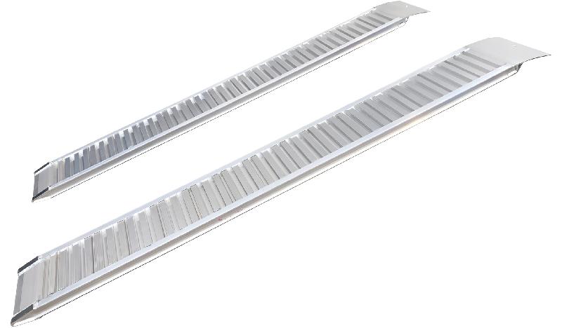 2 rampes de chargement en aluminium - 3 mètres - capacité 600 kg - Caractéristiques : - Légères et robustes - Longueur : 3 mètres - Largeur extérieure : 31,5 cm - Hauteur du profil : 30 mm - Epaisseur totale : 55 mm - Portée maximale de la paire : - - Avec