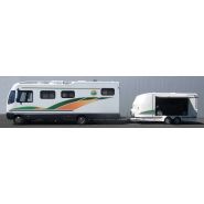Caractéristiques techniques : - Dimensions standard : 5.00 m x 2.30 m x 1.90 m - Face avant, pavillon et ailes en polyester moulé - Panneaux latéraux en composite (carbofont) - Plancher en CP marine filmé antidérapant - Ouverture arrière en double porte - Double essieu roues dessous - R