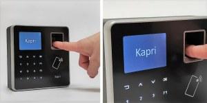 Kapri Online Bio s'identifie par empreinte digitale. Le terminal est programmé avec la technologie LFD (Live Finger Detection) pour une plus grande précision dans la détection des fausses empreintes digitales.