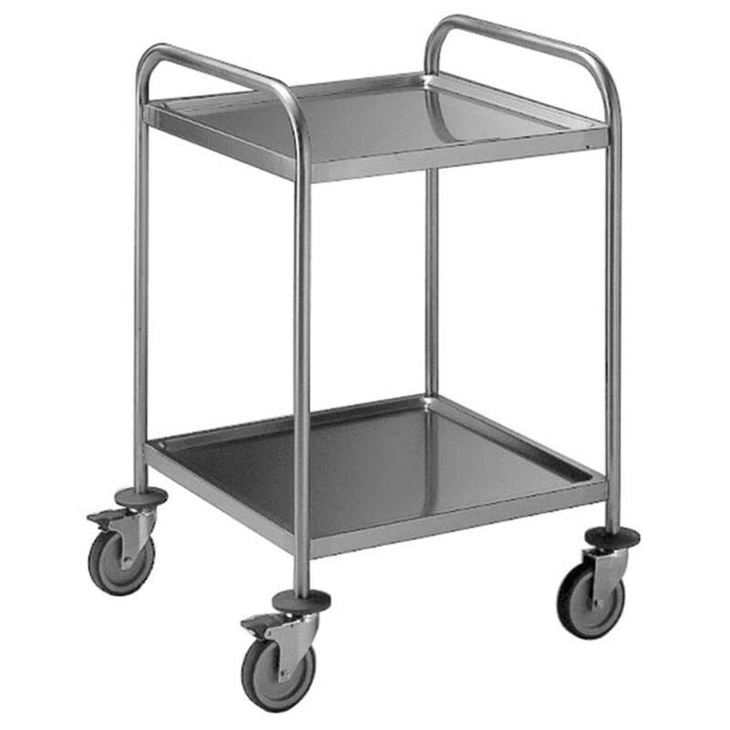 Chariot de service en inox professionnel - Version lourdeDécouvrez notre chariot de service en inox, spécialement conçu pour les professionnels du secteur de la restauration. Avec ses deux niveaux spacieux de 80x50 cm, il offre une capacité de charge impressionnante de 80 kg par plateau, garant