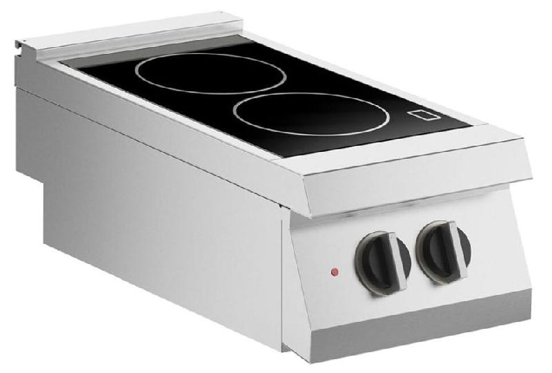 - 2 zones de chauffage de 3,5 kW chacune, ø 230 mm. - Corps en acier inoxydable - Avec soubassement ouvert - Plan de cuisson en vitrocéramique scellé avec la table de cuisson, épaisseur 6 mm - Avec détection automatique des récipients de cuisson - Identification des zones de chauffage par