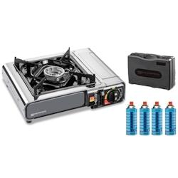 Réchaud à gaz 2200W INOX + 4 cartouches de gaz 190g KEMPER - gris inox 3701107756407
