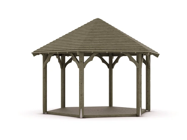 Kiosque en bois et poteaux avec sabots de fixation en acier galvanis.