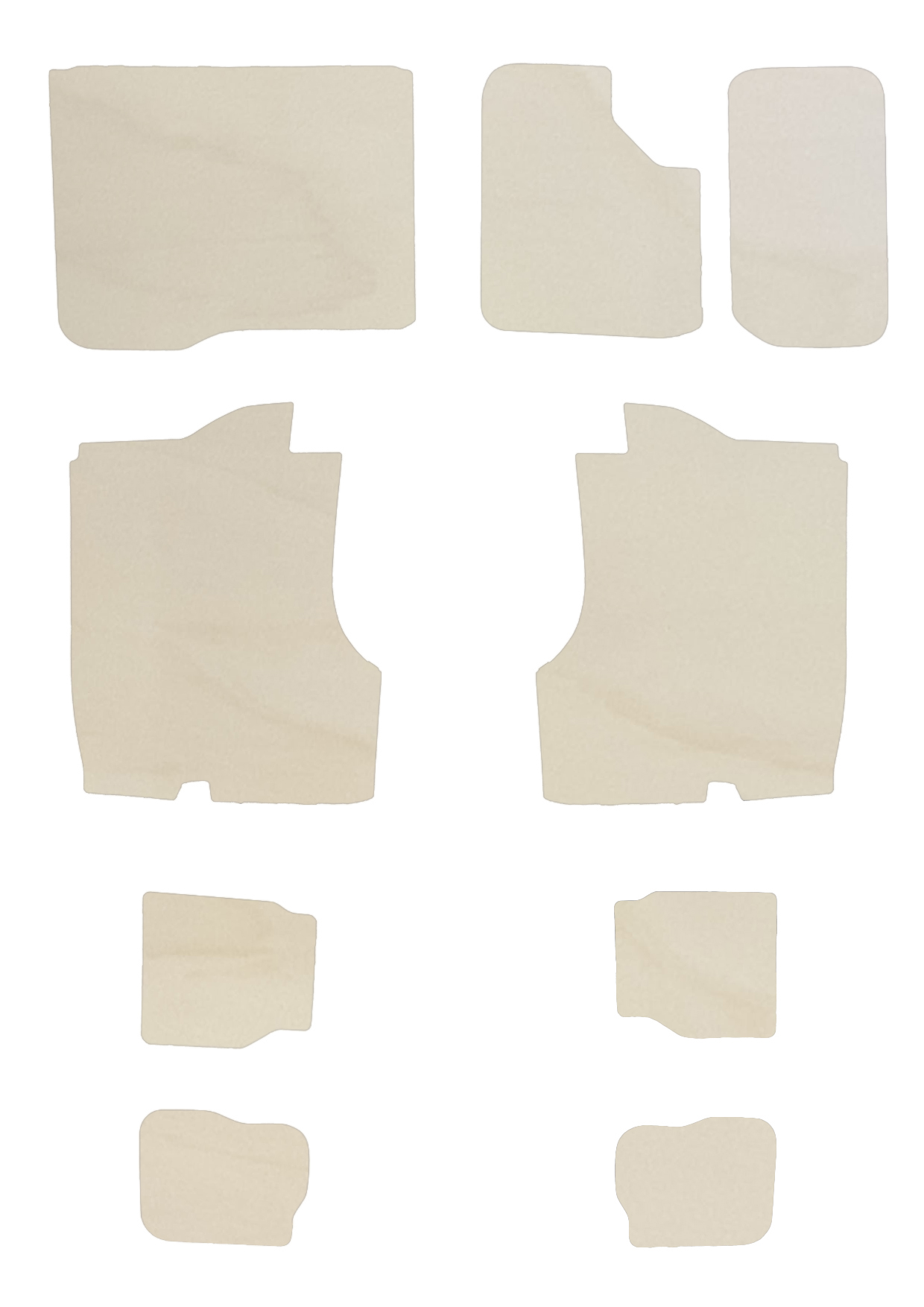 Kit de protection intérieur en peuplier gris : - Éléments inclus : côtés, portes, passages de roues. - Avantages : protège votre carrosserie (longévité, esthétique) et préserve la valeur du véhicule. - Caractéristiques : - Fabriqué en contreplaqué à base de peuplier issu de forêt