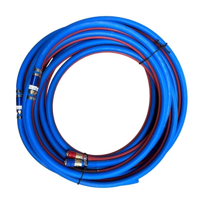 - Au choix 10 ou 20 mètres de tuyau jumelé Ø10x17 Oxygène / Acétylène GCE